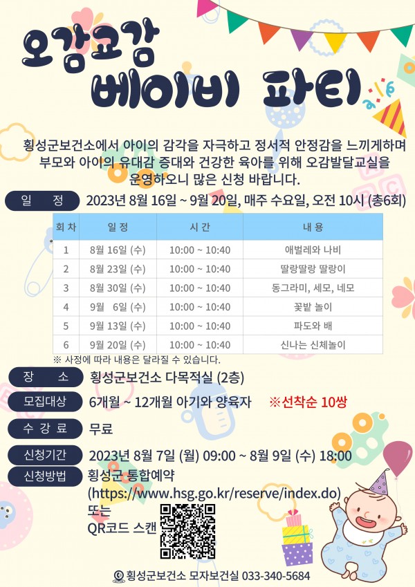 2023년 횡성군보건소 모자보건실 하반기 프로그램 수강생을 아래와 같이 모집합니다