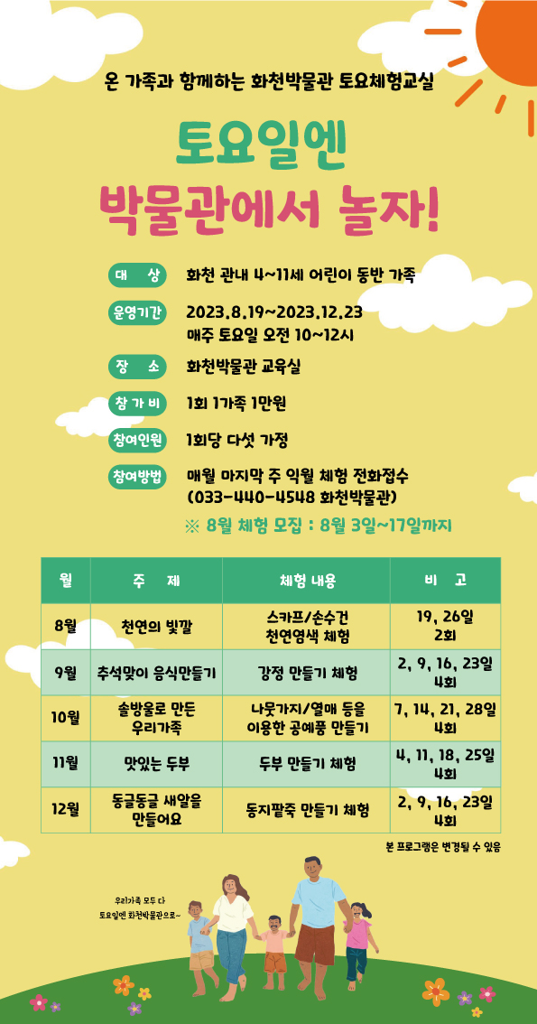 화천군 공지사항 화천박물관 토요 체험교실 모집 안내