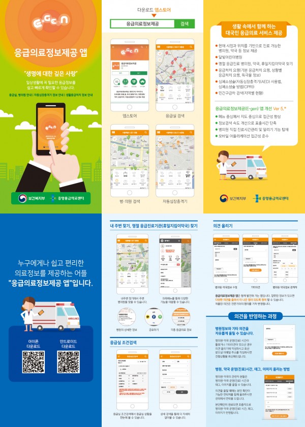 「응급의료정보제공 앱」 사용 안내 팜플렛을 첨부하오니 주민들의 많은 이용 바랍니다.